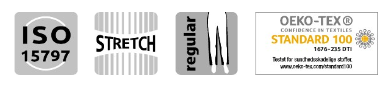 63% Polyester, 34% Baumwolle, 3% Elasthan, 225g/m2
