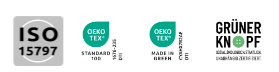 60°C waschbar, bleichen möglich, Trockner auf der Stufe 1, bügeln auf der Stufe 2, professionelle Textilreinigung möglich