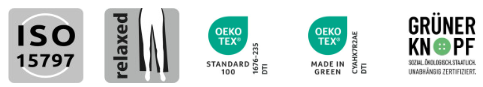 Weiss: 85°C waschbar, bleichen möglich, Trockner auf der Stufe 1, bügeln auf der Stufe 2, professionelle Textilreinigung möglich