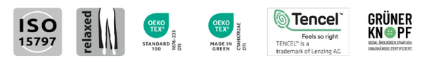 60°C waschbar, bleichen nicht möglich, Trockner auf der Stufe 1, bügeln auf der Stufe 2, professionelle Textilreinigung möglich