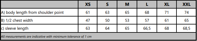 Material 2: 100% Polyester, Fütterung mit "Bluesign" Zertifikat (Body 100 g/m², Ärmel 80 g/m²)
